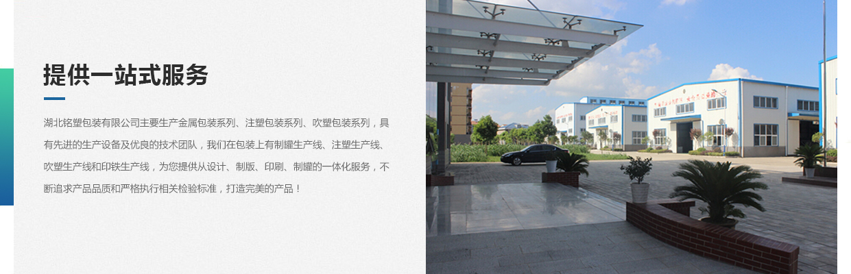 湖北銘塑包裝有限公司一家集研發(fā)、生產(chǎn)、銷(xiāo)售于一體的較優(yōu)秀民營(yíng)企業(yè),技術(shù)力量雄厚,產(chǎn)品質(zhì)量可靠。位于交通暢順,百業(yè)興旺、經(jīng)濟(jì)富裕、政策開(kāi)放的孝感開(kāi)發(fā)區(qū)域。我們企業(yè)的營(yíng)銷(xiāo)戰(zhàn)略是以建筑為土壤,以產(chǎn)品為種子,以質(zhì)量為肥料,讓綠色鋪滿(mǎn)全球。憑借多年來(lái)的行業(yè)經(jīng)驗(yàn),公司不斷進(jìn)行創(chuàng)新和研發(fā),為市場(chǎng)提供更廣泛的產(chǎn)品應(yīng)用領(lǐng)域和更好環(huán)保節(jié)能產(chǎn)品,為國(guó)家能源環(huán)保戰(zhàn)略和可持續(xù)發(fā)展戰(zhàn)略作出應(yīng)有的貢獻(xiàn)。     湖北銘塑包裝有限公司主要生產(chǎn)金屬包裝系列、注塑包裝系列、吹塑包裝系列,具有先進(jìn)的生產(chǎn)設(shè)備及優(yōu)良的技術(shù)團(tuán)隊(duì),我們?cè)诎b上有制罐生產(chǎn)線(xiàn)、注塑生產(chǎn)線(xiàn)、吹塑生產(chǎn)線(xiàn)和印鐵生產(chǎn)線(xiàn),為您提供從設(shè)計(jì)、制版、印刷、制罐的一體化服務(wù),不斷追求產(chǎn)品品質(zhì)和嚴(yán)格執(zhí)行相關(guān)檢驗(yàn)標(biāo)準(zhǔn),打造更好的產(chǎn)品!